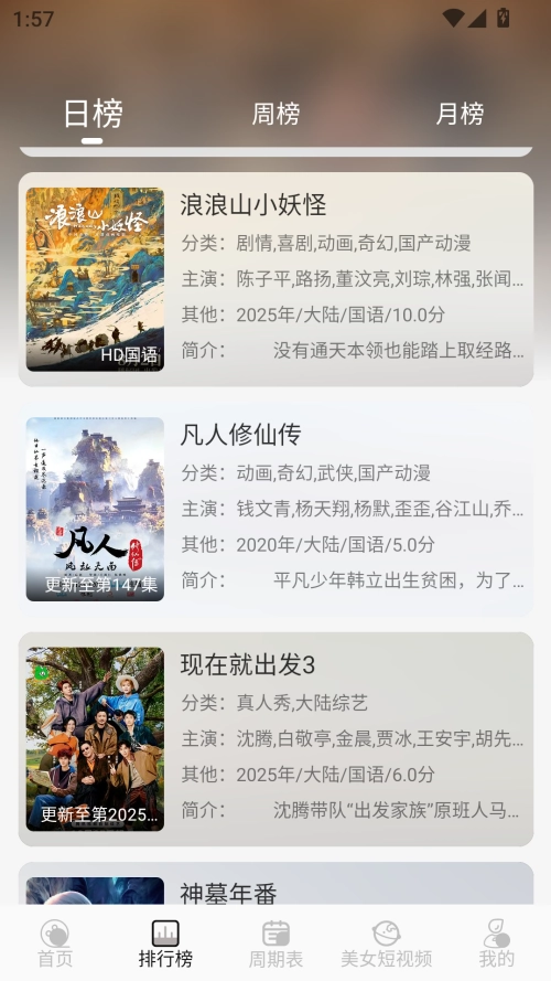 2、用户可在排行榜看近期最热门的电视剧、电影等。