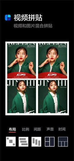 视频拼贴功能:能够把多个视频拼接成宫格形式,并且可以自由掌控每个视频的播放时长与顺序,同时还支持视频和图片的混合拼贴。