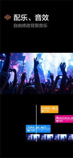 【音乐】支持自定义添加音乐,你可以为视频搭配喜欢的音乐风格,让视频更有趣。
