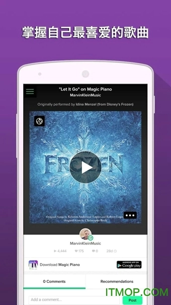 魔法钢琴中文(Magic piano)是一款以钢琴为核心元素的音乐类应用,涵盖了古典、流行、影视原声等丰富多样的音乐类型,曲库资源十分充足。玩家不仅能挑选心仪的曲目进行演奏,还可以和好友分享互动。要是你对这款软件感兴趣,就赶紧来IT猫扑看看吧!