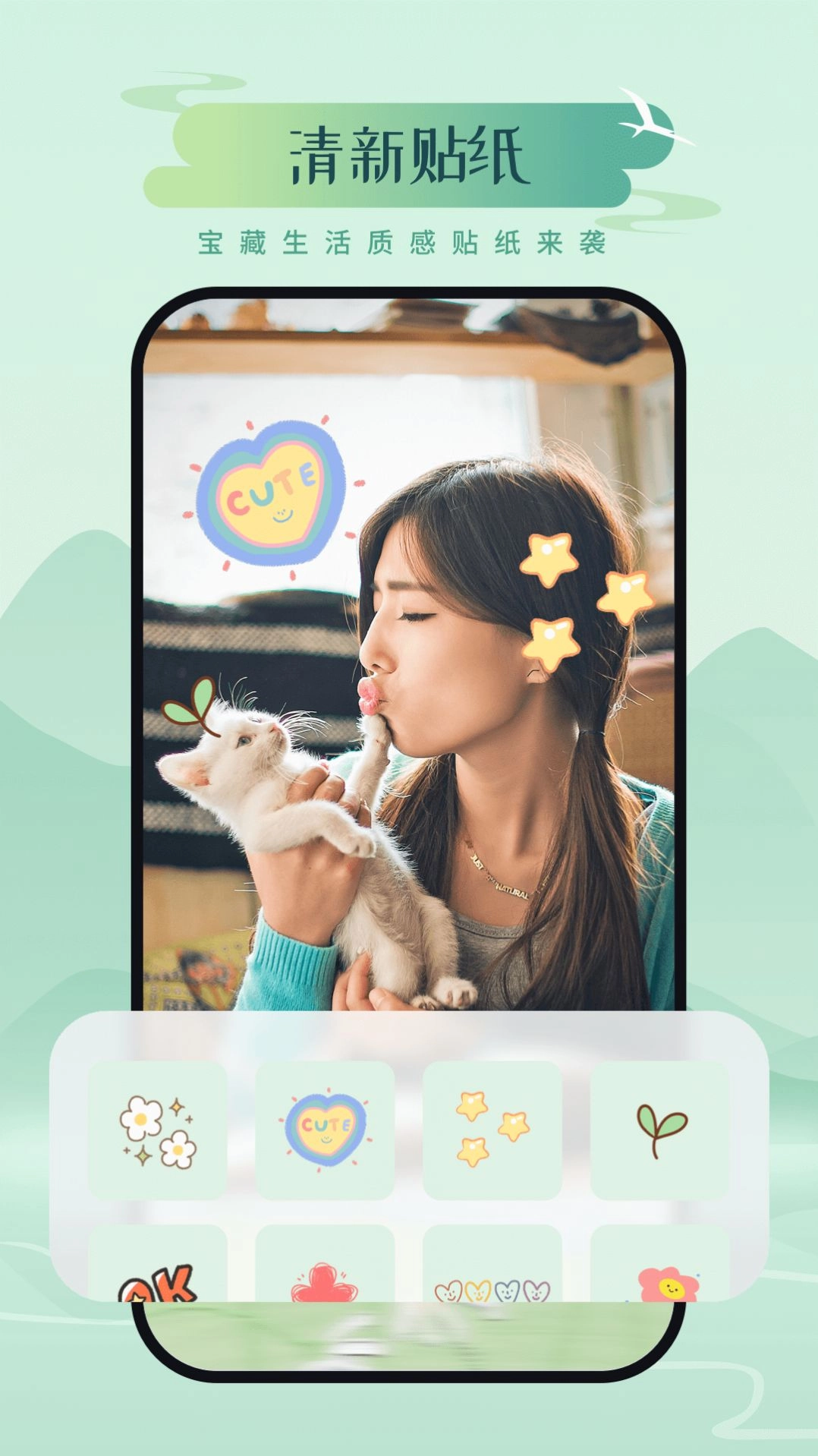 3、支持添加贴纸、滤镜等个性化元素,让你能轻松创作出风格独特的照片作品
