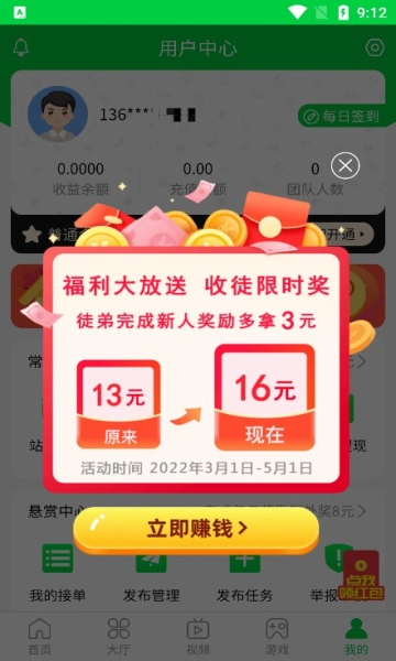 2、完成任务获取奖金:平台设有各类简单任务,完成后可即时获得现金奖励。