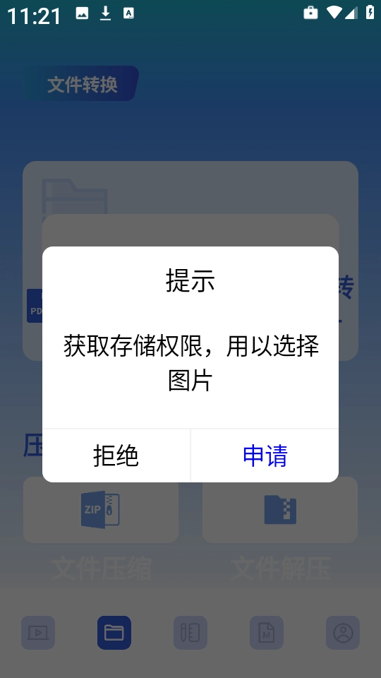 3、第一次使用这个功能时,系统会弹出授权访问本地文件的提示,点击“申请”按钮来开启所需的必要权限。