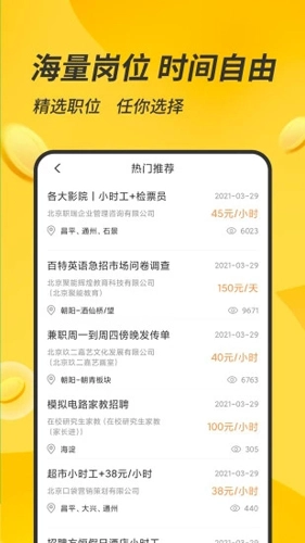 2、海量职位供你挑选;一键快速报名,选择心仪地点开展兼职,不受地域限制。