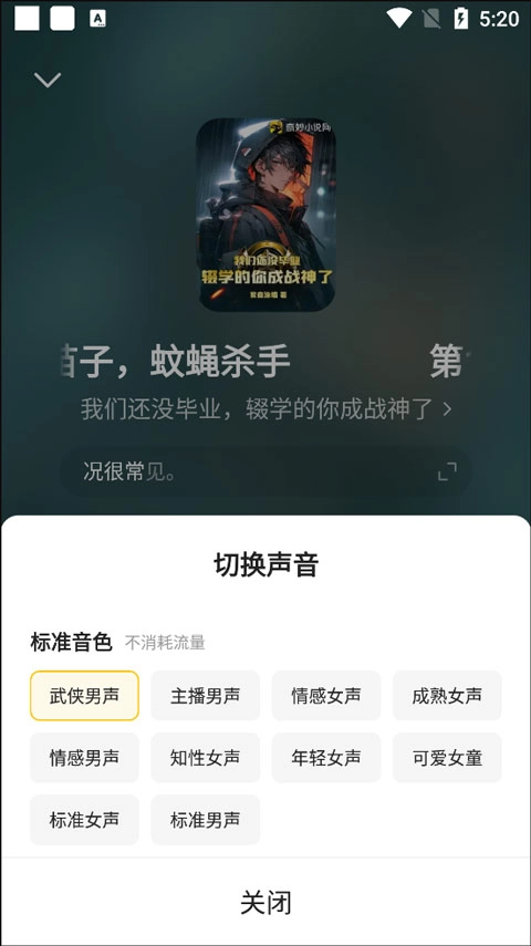 2、软件为大家提供了武侠男声、主播男声、情感女声、成熟女声等多种声音,可供自由切换。