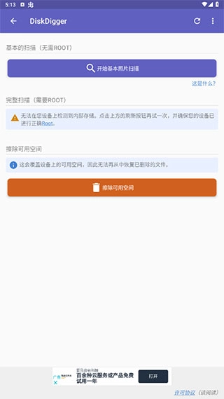 DiskDigger还具备直接擦除用户已删除信息的功能,能使其无法通过其他方式恢复。