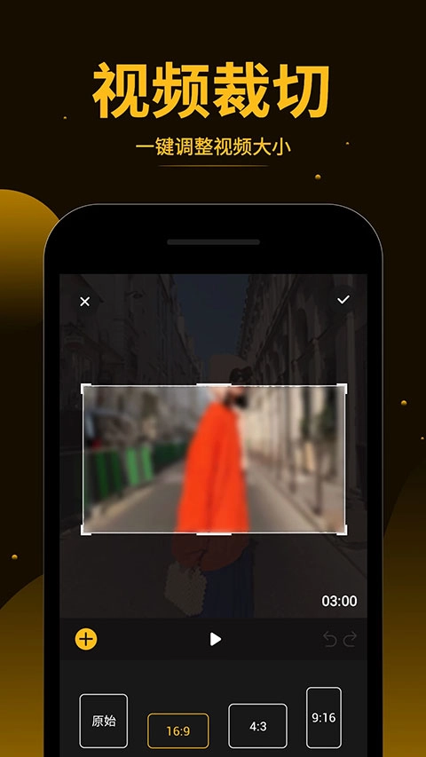 支持多种比例的裁剪选项,像1:1正方形、9:16竖屏这类主流格式都包含在内,能适配社交平台的需求,让你可以自由定义画面的构图。