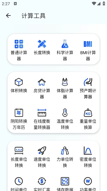 3.点击“计算工具”进入后,会看到多个不同类型的计算器可供选择。