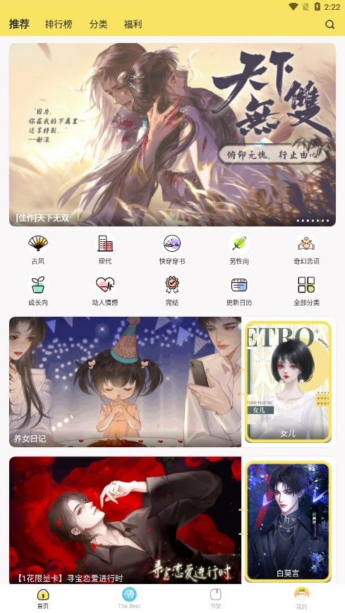 这里的作品类型十分丰富,涵盖古风、现代、二次元等多种风格,宫斗宅斗、江湖仙侠、修仙玄幻、豪门娱乐圈、校园等多元剧情可供你任意挑选。