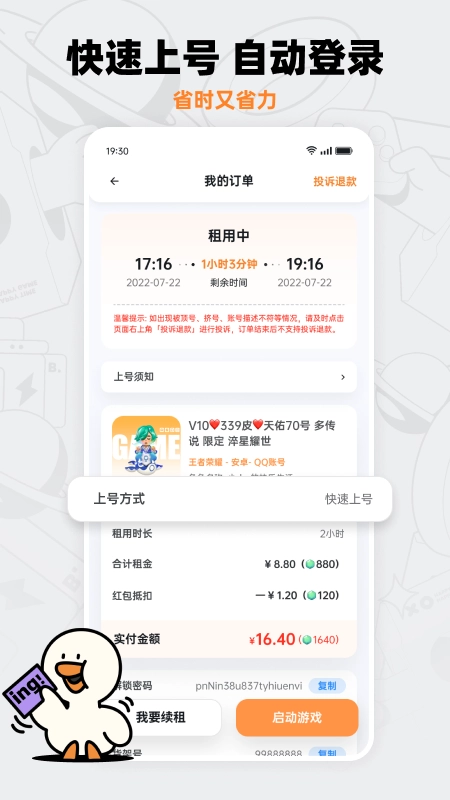 2、自动上号,租赁后可自动登录客户端进行。