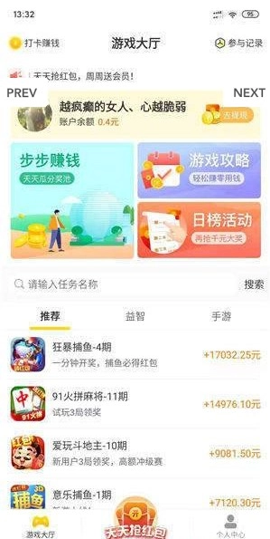 蘑菇星球的主要玩法是在平台里试玩各类小游戏,以此获取赚取零花钱的机会。平台上有不少优质好玩的游戏,试玩不同的游戏,能得到的红包奖励也会不一样。