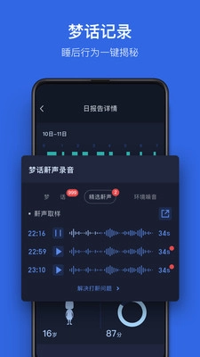 1、基础的睡眠数据,还能记录打鼾和梦话内容,让用户更全面地了解自己的睡眠状况;
