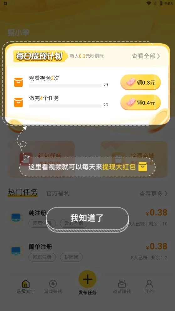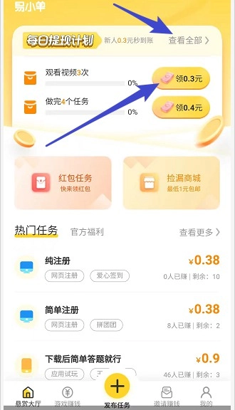 【新人专属福利】:新用户首次提现门槛低至1元,完成简单的试玩任务就能轻松赚得零花钱。