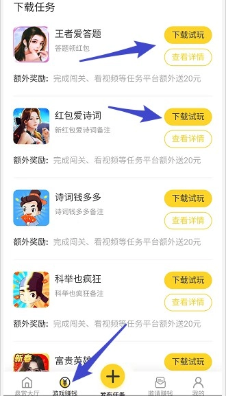 【任务赚钱】:每天都会更新海量兼职任务,覆盖多种类型,其中还包含热门的试玩任务。
