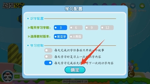 5、这里可以依据孩子的实际情况来调整学习配置,调整完成后点击“确定”按钮即可。
