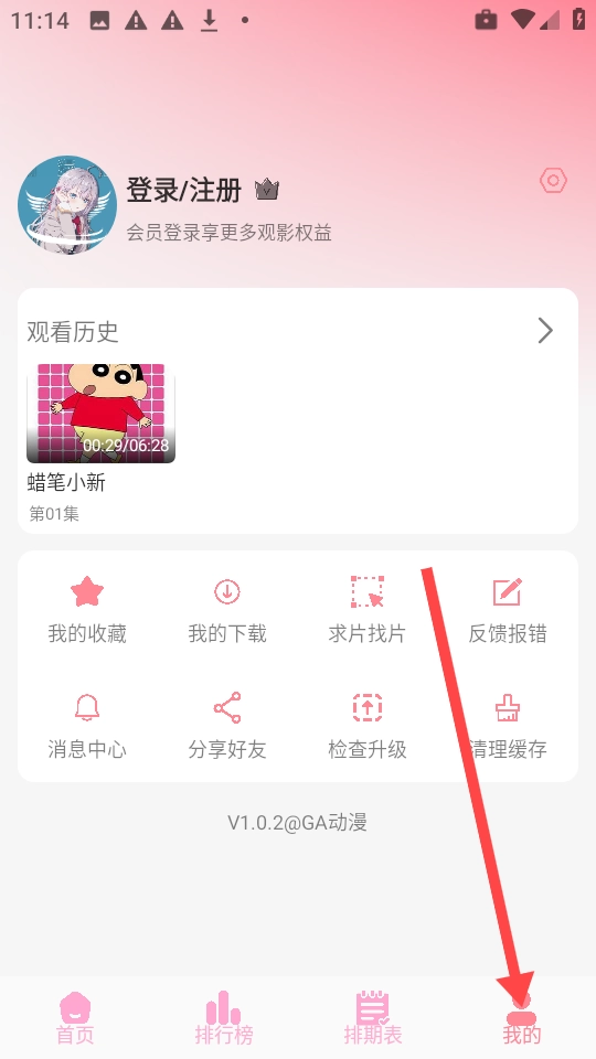 1、启动GA动漫应用后,点击底部导航栏最右侧的“我的”个人中心入口。