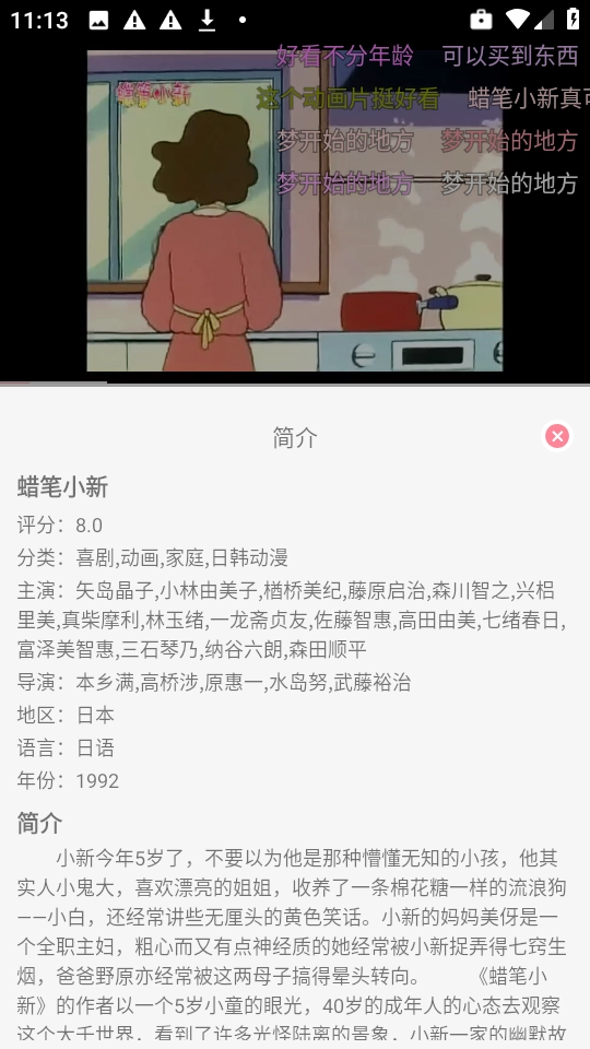 2、挑选任意一部想观看的动漫并开始播放,这里以经典作品《蜡笔小新》为例来进行演示。