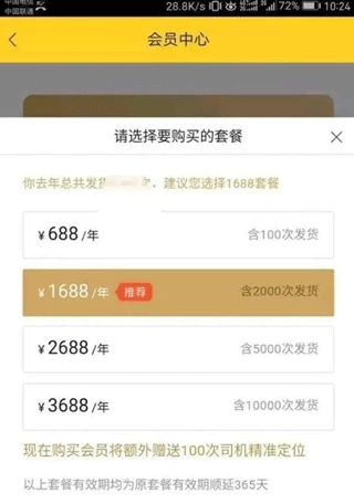 A套餐:688元/年——100条货源