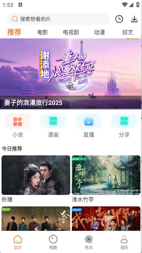 2、进入首页后,顶部导航栏整合了电视剧、电影、综艺等主流影视分类,方便用户快速浏览各类内容。