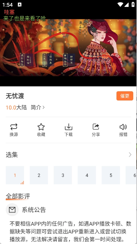 4、进入播放页面后,可自由切换剧集进度与多个播放源,保障观看过程流畅不中断。