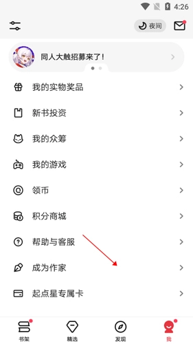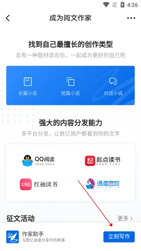 2.点击最下方的“成为作家”。