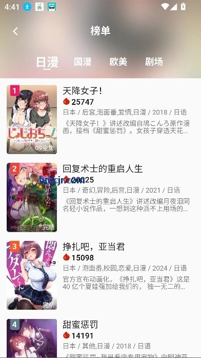 3、提供实时更新的热度排行榜单推荐 应用内设有实时更新的热度排行榜,展示了当前最受欢迎的番剧,帮助你了解哪些作品正在流行,便于追看热门剧集。