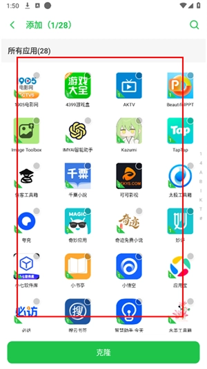 4、添加成功后,所有克隆生成的应用都会统一展示在主界面,点击对应的图标就能快速启动独立的应用实例。