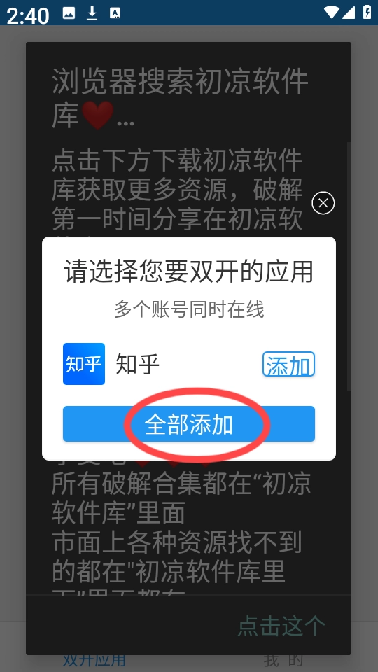 3、在列表里挑选你想进行双开的应用,检查确认没有问题后,点击“全部添加”按钮来完成导入操作。