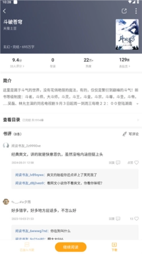 2、进入小说页面后,你可以查看其他用户的评论,也能把喜欢的作品收藏起来。