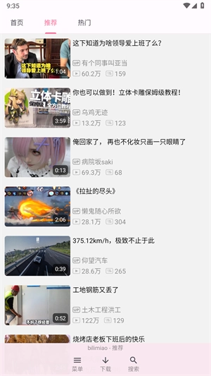 1、界面和哔哩哔哩客户端相同,简洁清爽,简约且。
