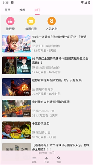 3、进入热门板块,这里会为你呈现对应的排行榜,还有每周必看、入站必刷的精彩内容。