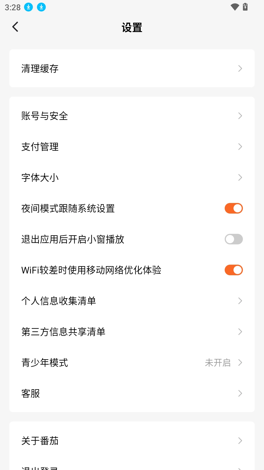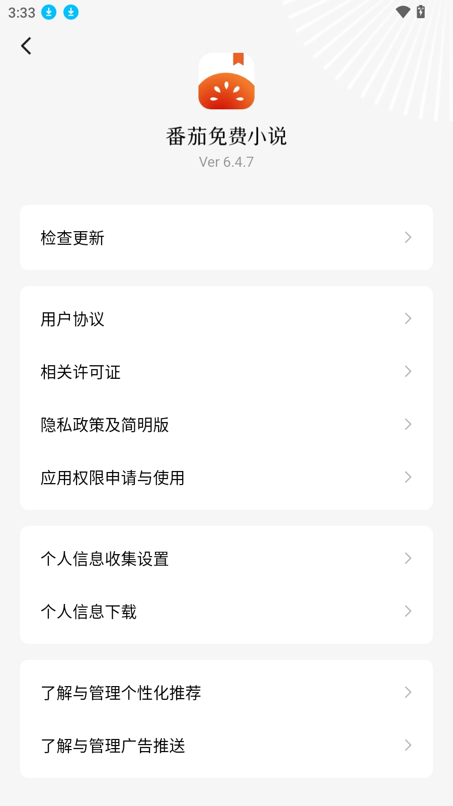 2.找到右上角的设置图标并点击,接着向下滑动页面,找到“关于番茄文字”选项。