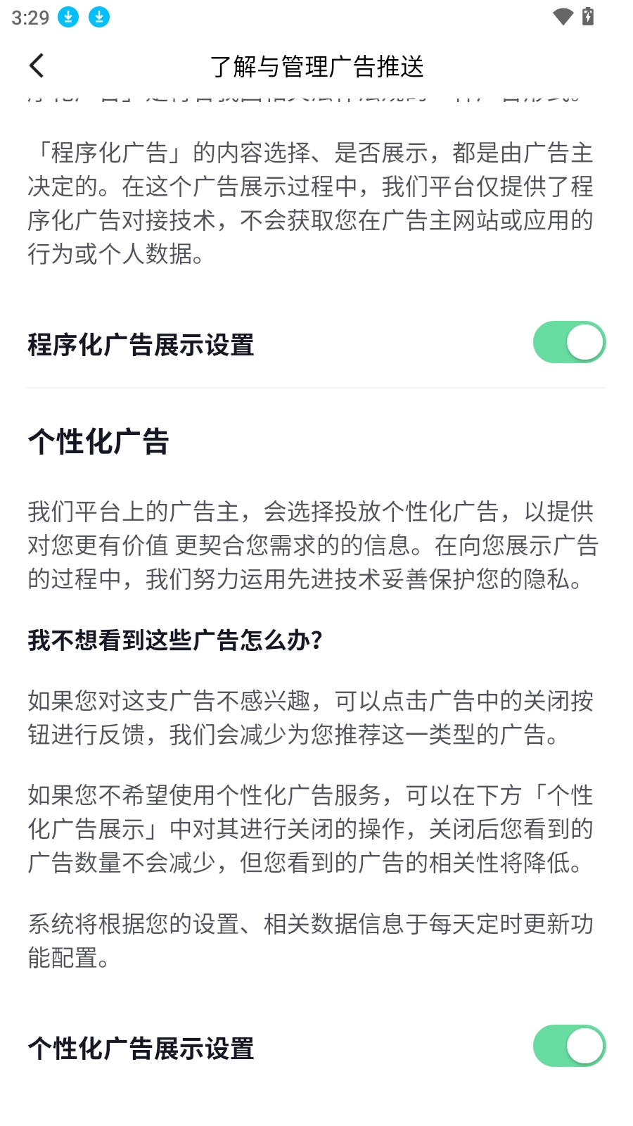 4.关闭所有广告站式按钮即可