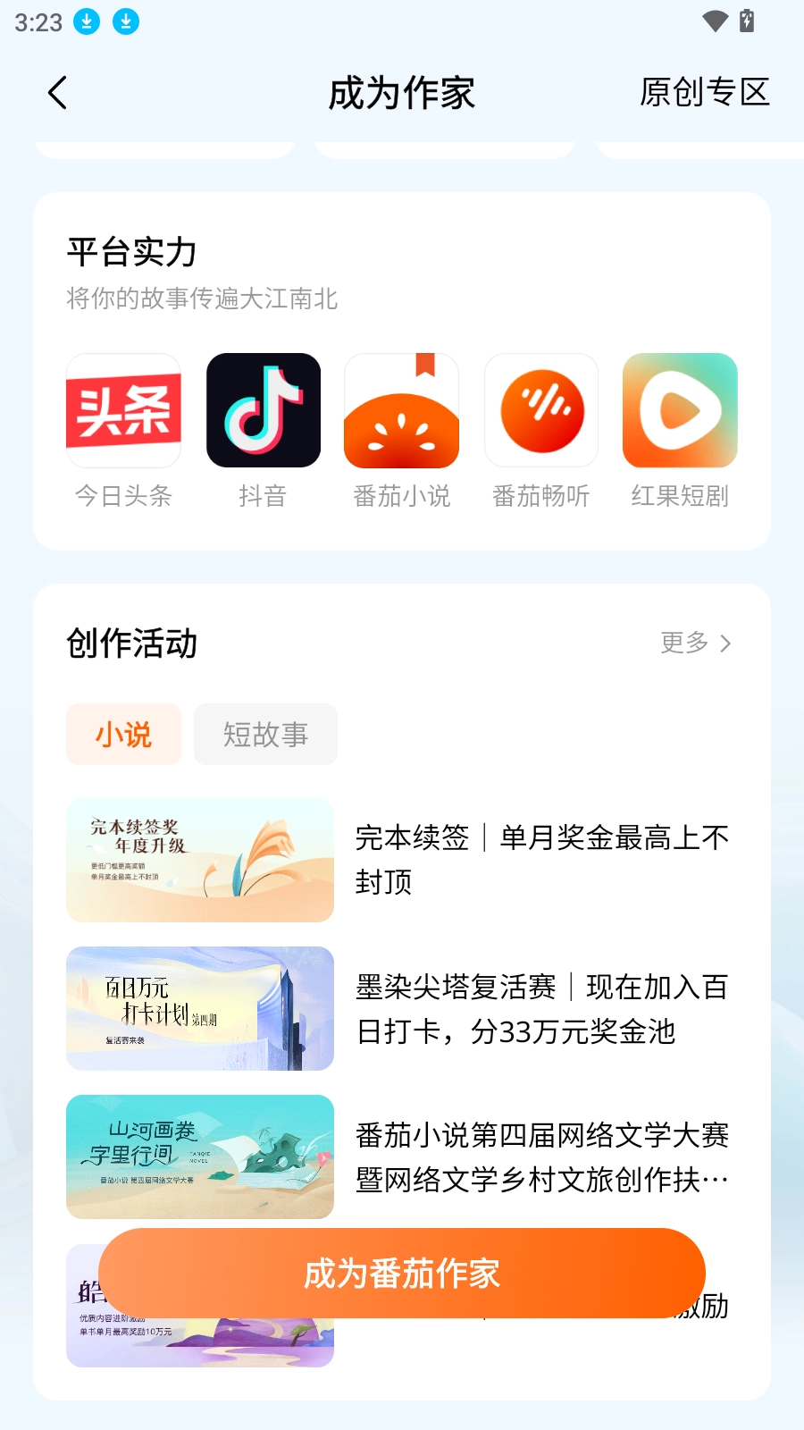 2.点击就成为番茄作家