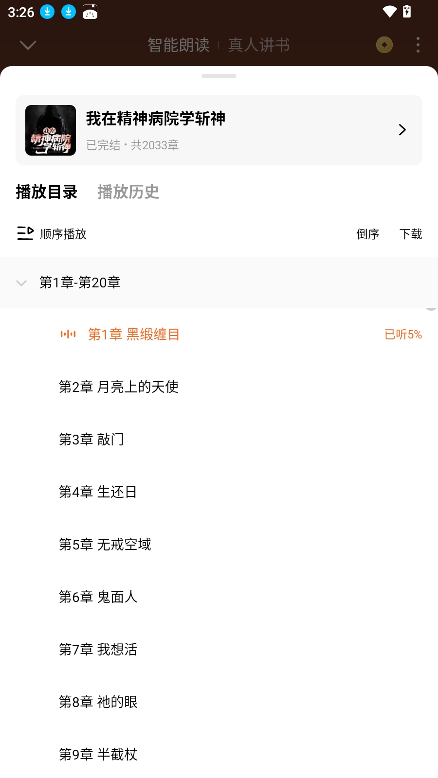 3.点击目录选择想要收听的章节内容