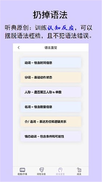 听典英语,采用看电影的形式助力你学习英语,无需死记硬背单词,也不必硬啃枯燥的语法知识,整个过程借助真实语境下的听力训练来掌握语言技能。每天仅需花费几分钟,跟着原声电影片段练习发音、培养语感,实现听力、词汇、语法的同步提升。