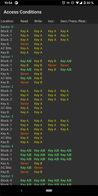 1、对Mifare Classic的访问条件进行编码与解码操作。