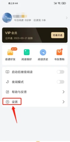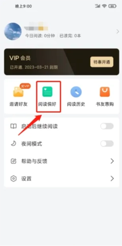 2、在“我的”页面中,点击【阅读偏好】选项。