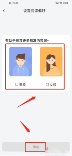 3、进入阅读偏好设置页面,勾选你感兴趣的类型,点击【确定】完成选择。