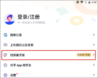 进入首页,点击“搜索答案”按钮开始使用搜题功能。