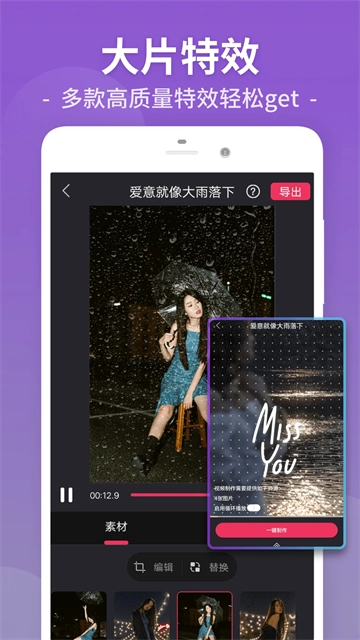 2、海量背景音乐素材,为您的视频增添酷炫音效,还支持自助后期配音。