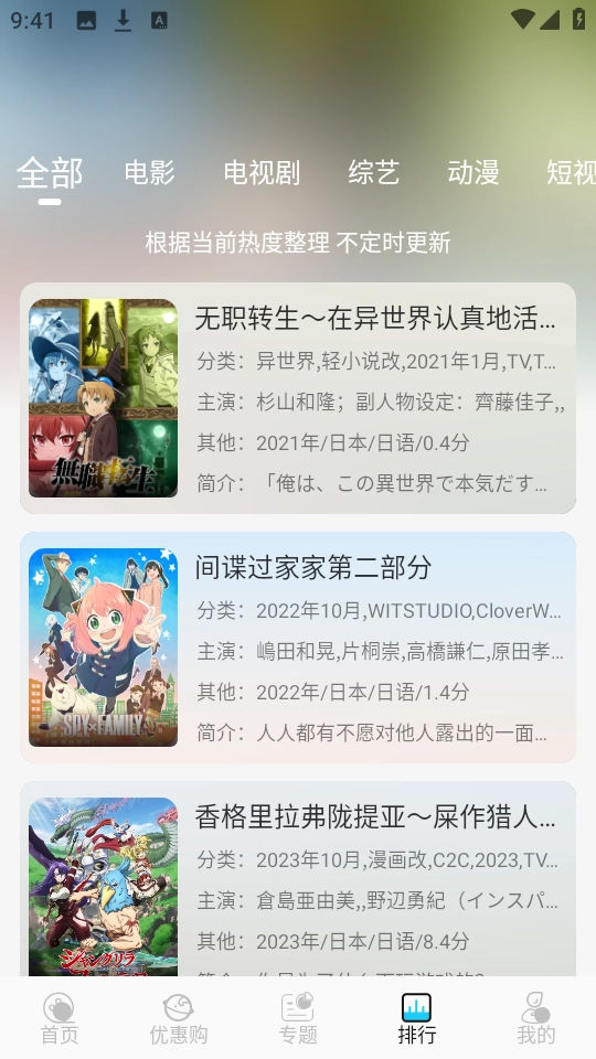 5、点击底部导航栏的“排行”选项,即可查看依据全网热度动态生成的实时影视排行榜。