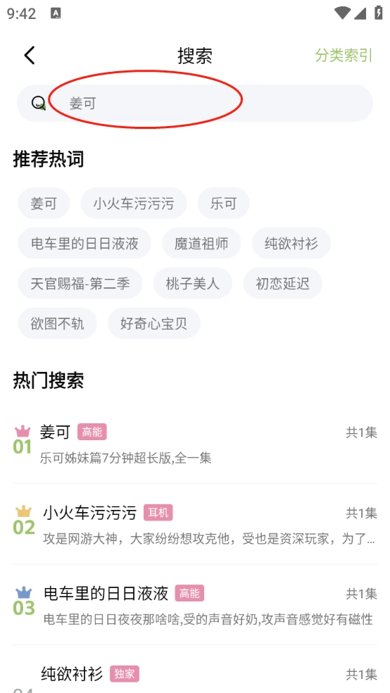 3、分类页面主要是对广播剧进行了详细分类,涵盖了时代、剧情以及性向等维度。