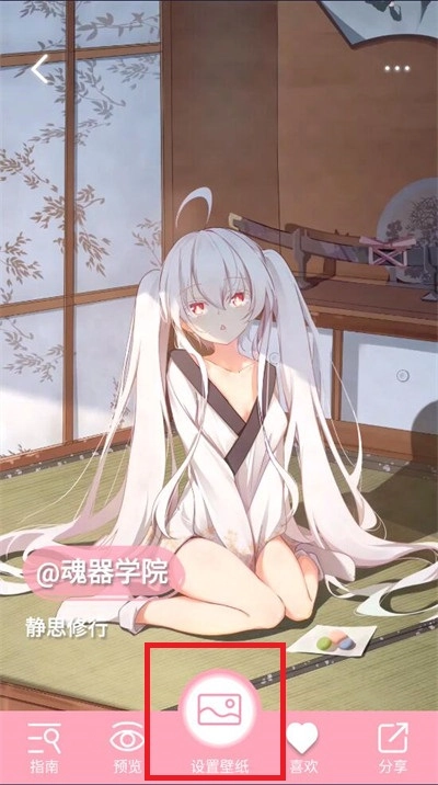 3、接着在详情页面里,我们就能看到下方的【设置壁纸】按钮,点击它就能将该壁纸设置成我们的桌面壁纸了。
