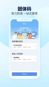 【团体码功能说明】当用户加入团队后,管理员在获得相应授权的前提下,能够随时查看团队成员的健康码状态、核酸检测结果记录以及疫苗接种完成情况。