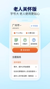 设有广州交警服务专区、教育资讯平台、潮州城市专题、公安政务服务、卫生健康中心、住房保障等各类专题服务;同时包括信用服务、通信套餐、旅游指南、粤智助平台、流动人口管理及红色教育课堂等特色内容。