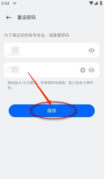 4、最后在完成短信验证后,重置新密码,点击“保存”按钮即可。