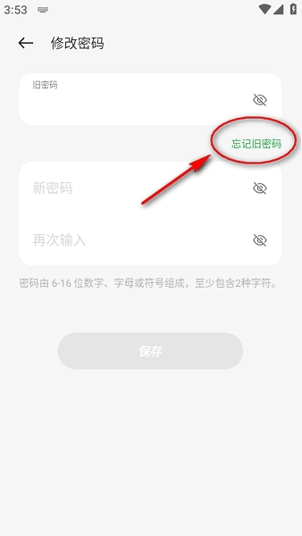 3、进入修改密码页面点击"忘记密码"。