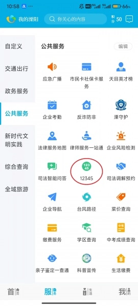 2、点击屏幕左侧的“公共服务”。