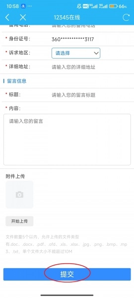 7、填写完相关信息,最后点击屏幕下方的“提交”。